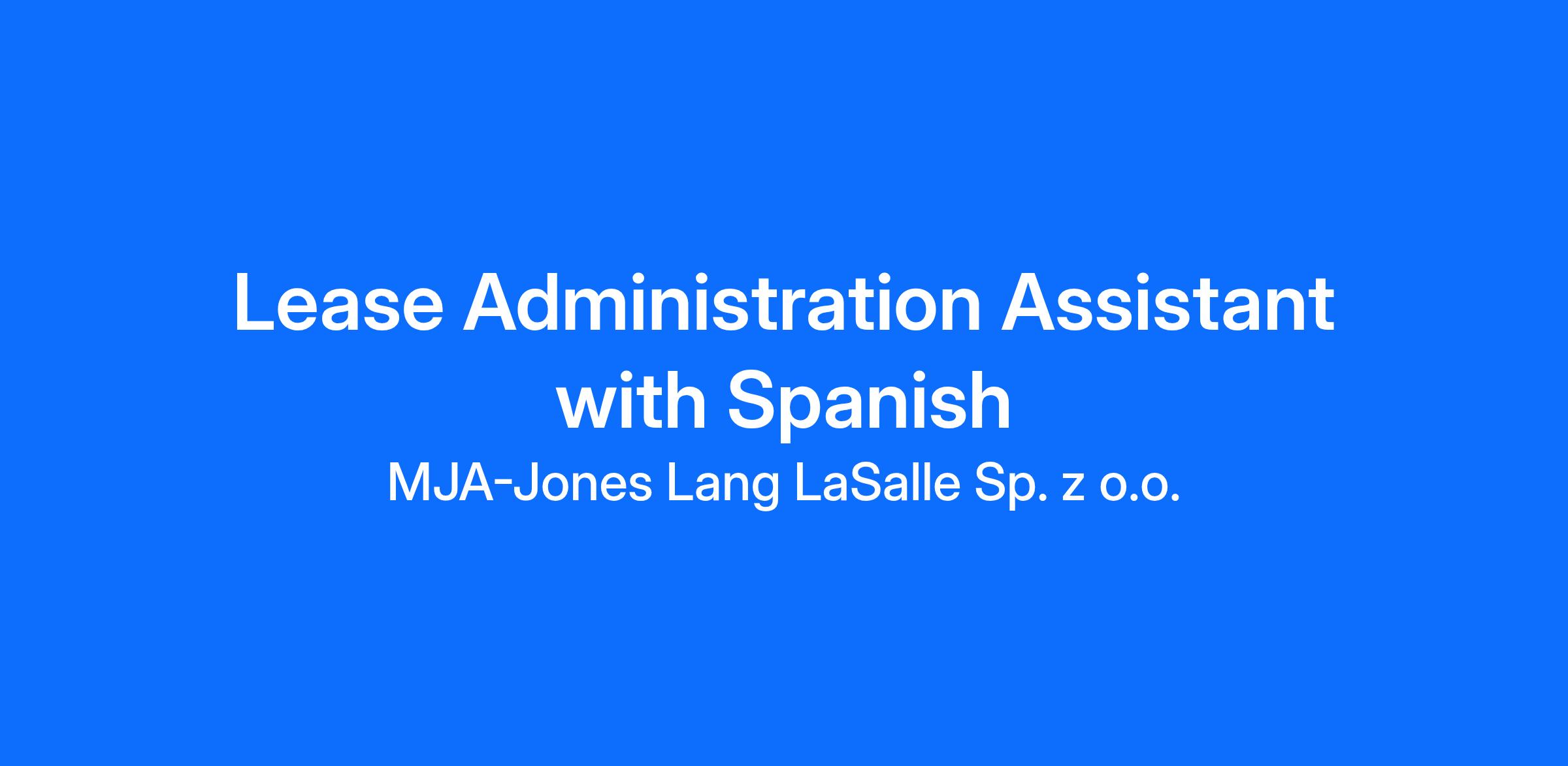 We are looking for a Lease Administrator with Spanish for our Lease Administration team.