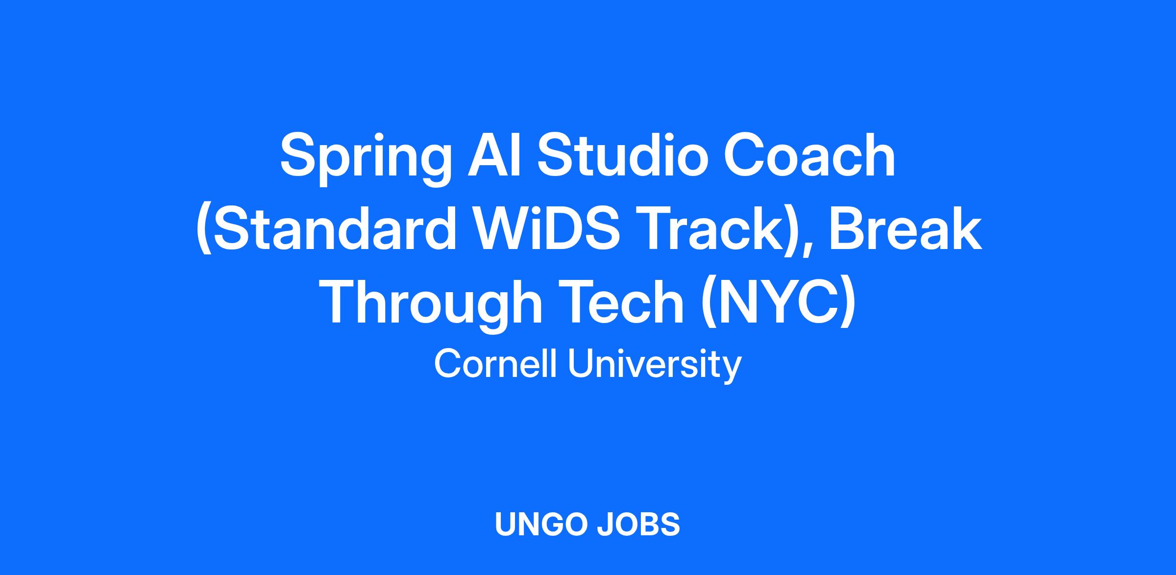 Break Through Tech is seeking AI Studio Coaches (Standard WiDS Track) to guide and support undergraduate fellows through the Spring 2026 AI Studio. Coaches will foster engagement, facilitate community, and provide light-touch technical and professional guidance during the WiDS Datathon and monthly Maker Days.