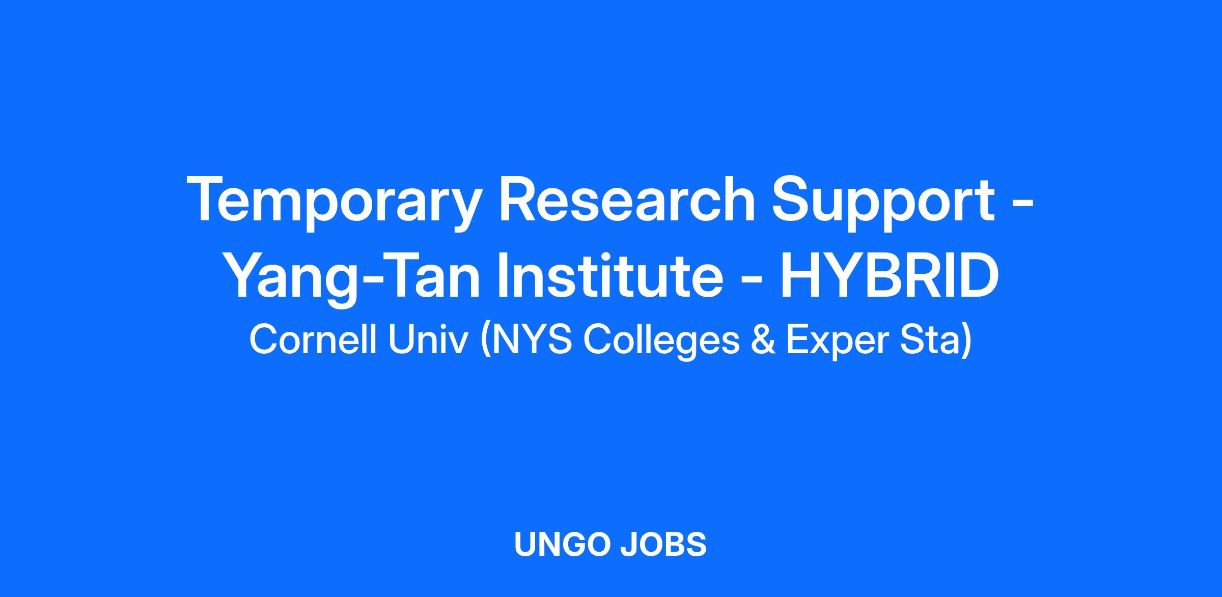 The School of Industrial and Labor Relations at Cornell University has an immediate opening for a Temporary Research Support - SP position in the K. Lisa Yang and Hock E. Tan Institute on Employment and Disability (YTI) in the Extension/Outreach Division.